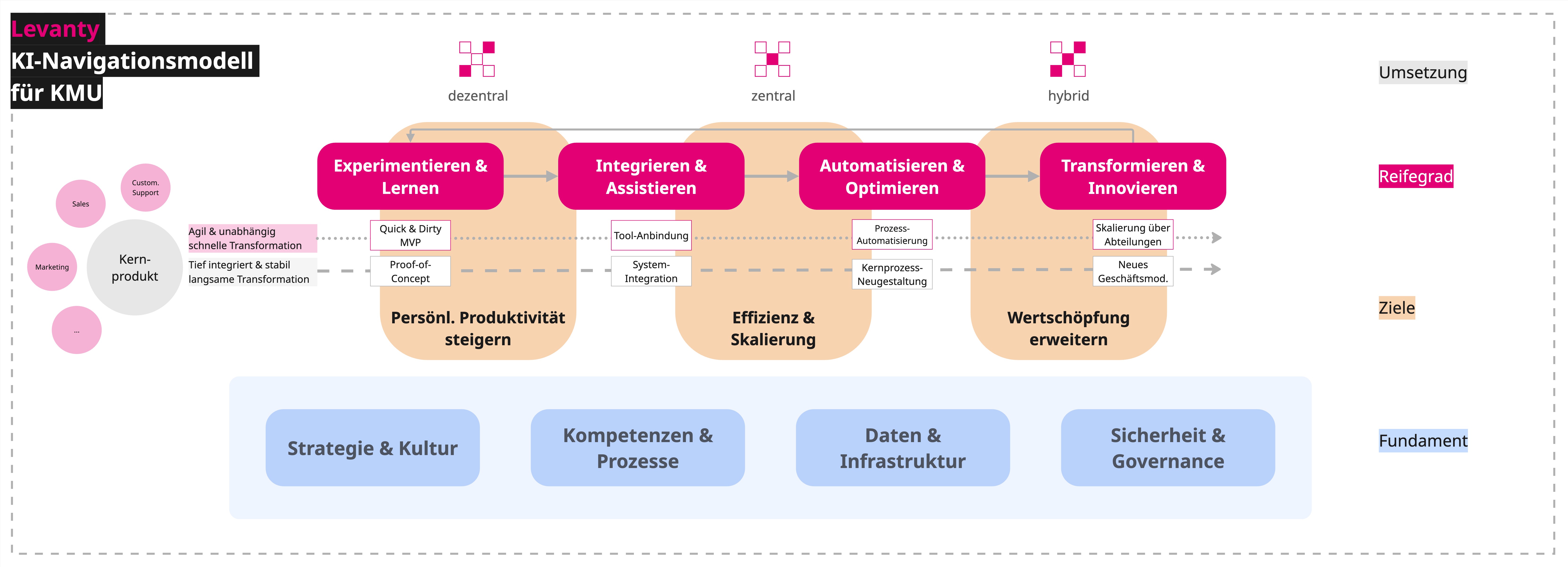 KI-Integration kann vieles bedeuten: Von ChatGPT nutzen bis hin zu komplexer Datenverarbeitung oder quasi-autonomen Agents. Mein Framework, entwickelt aus zahlreichen Projekten mit KMU, schafft Orientierung.